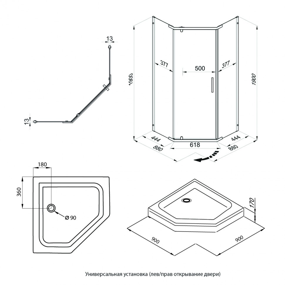 Душевое ограждение Ультра 90х90 Б 1/4 круга глуб. подд. Белый