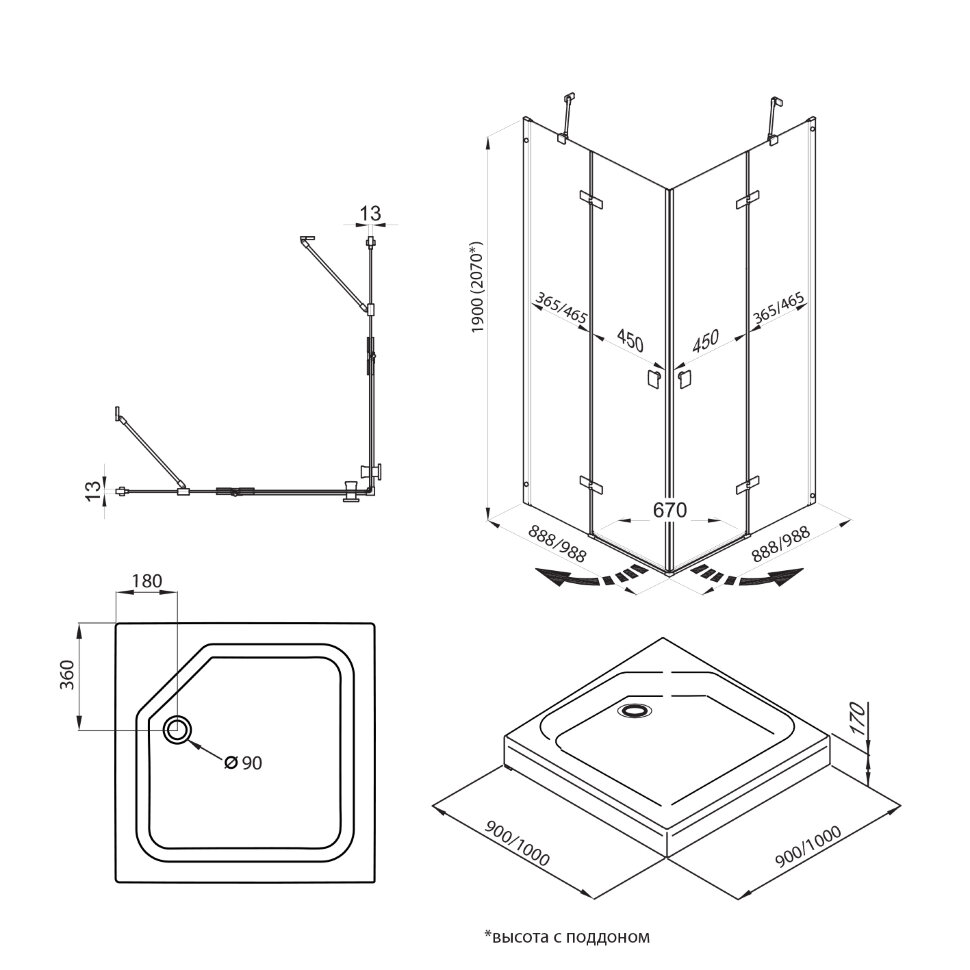 Душевое ограждение Альфа-Хром 80х80 В 1/4 круга средн. подд.