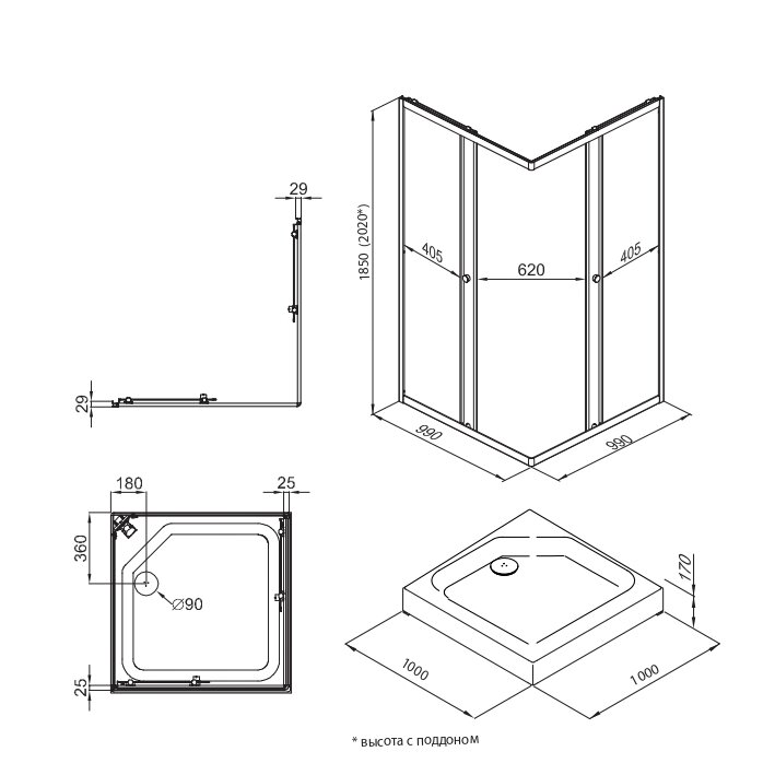 Душевое ограждение Вента-Хром 100х100