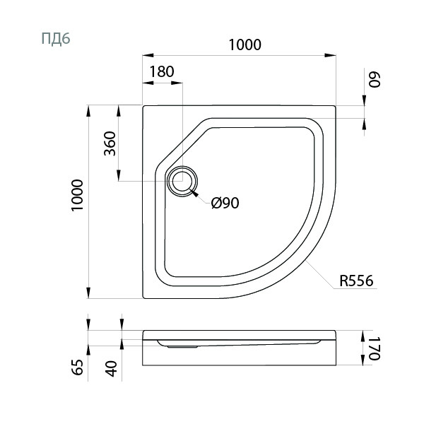 ПД 6 Поддон Душевая кабина низкий полукруг 100х100