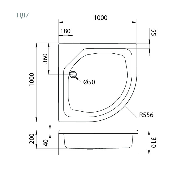 ПД 7 Поддон Душевая кабина средний полукруг 100х100