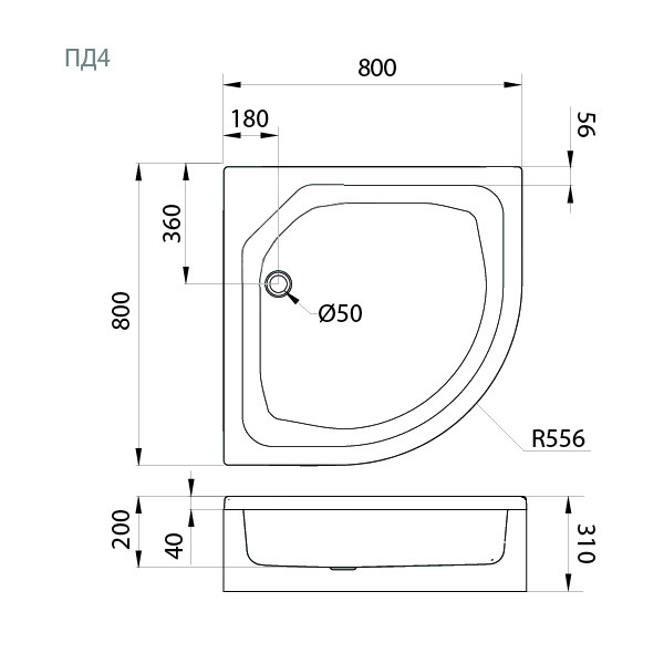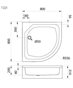 ПД20 Поддон Душевая кабина 1/4 круга средний 80х80