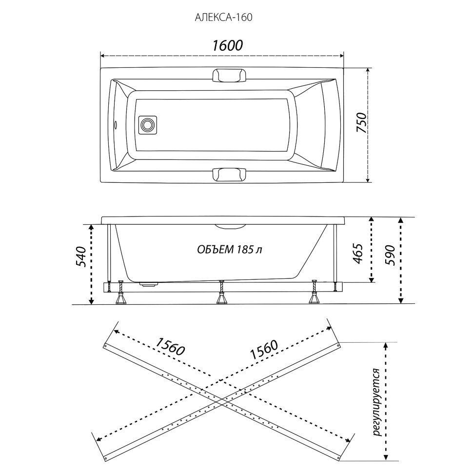 Ванна акриловая Алекса 160