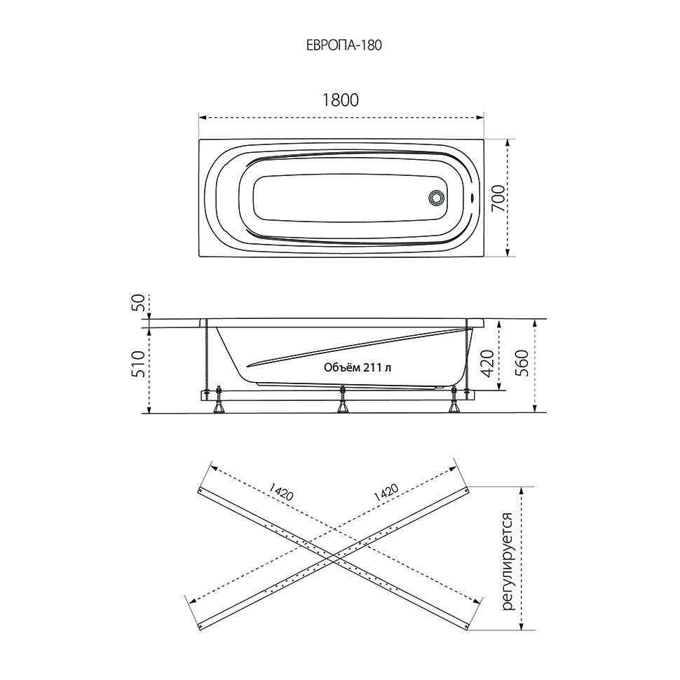 Ванна акриловая Европа 180