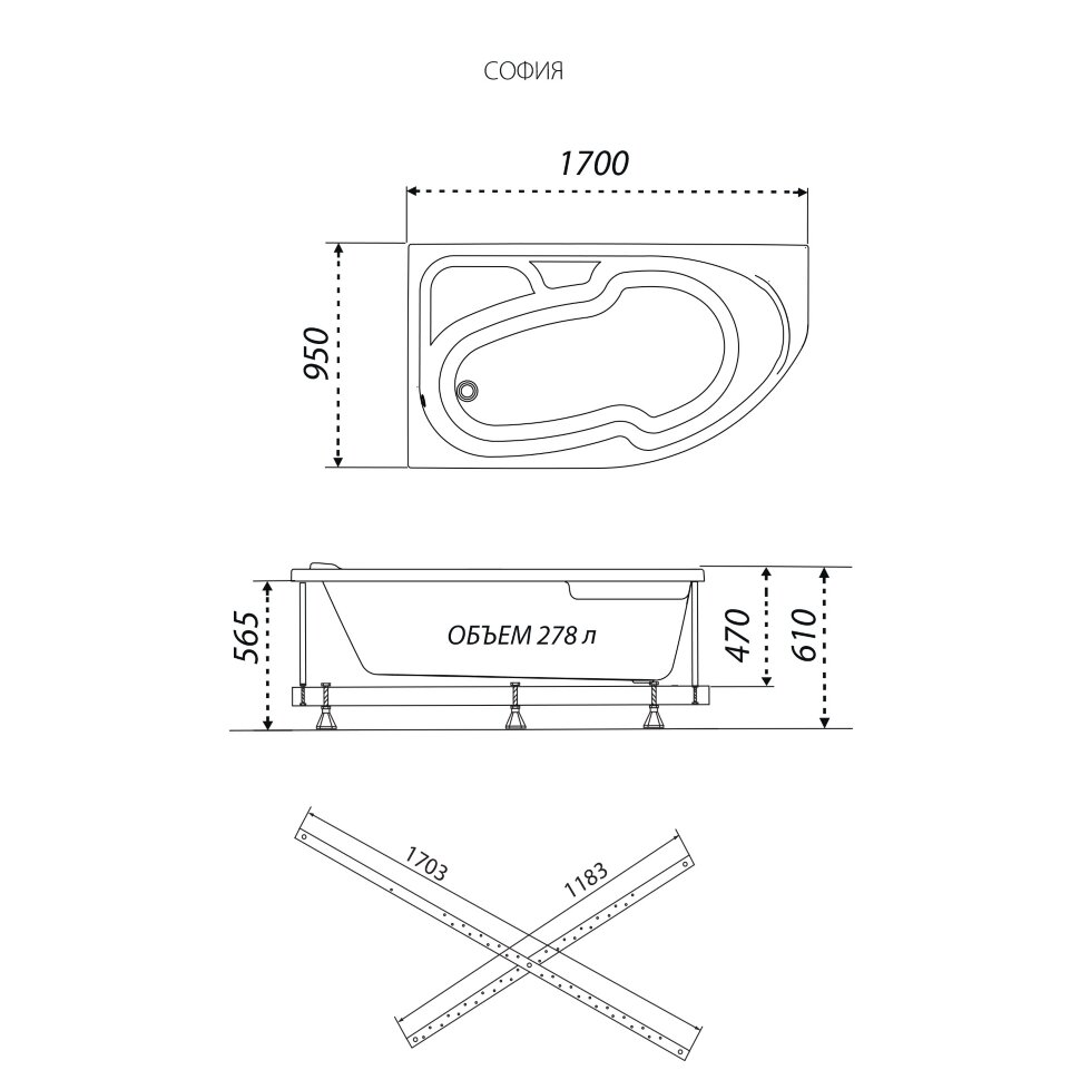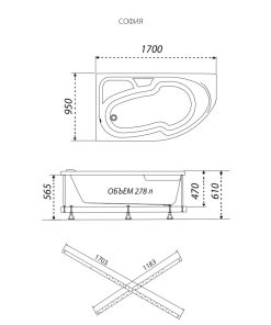 Ванна акриловая София 170 левая